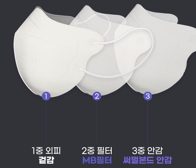 A. 3중 필터 구조지만 경량 소재 사용으로 일반 KF94 대비 답답함이 적어요.